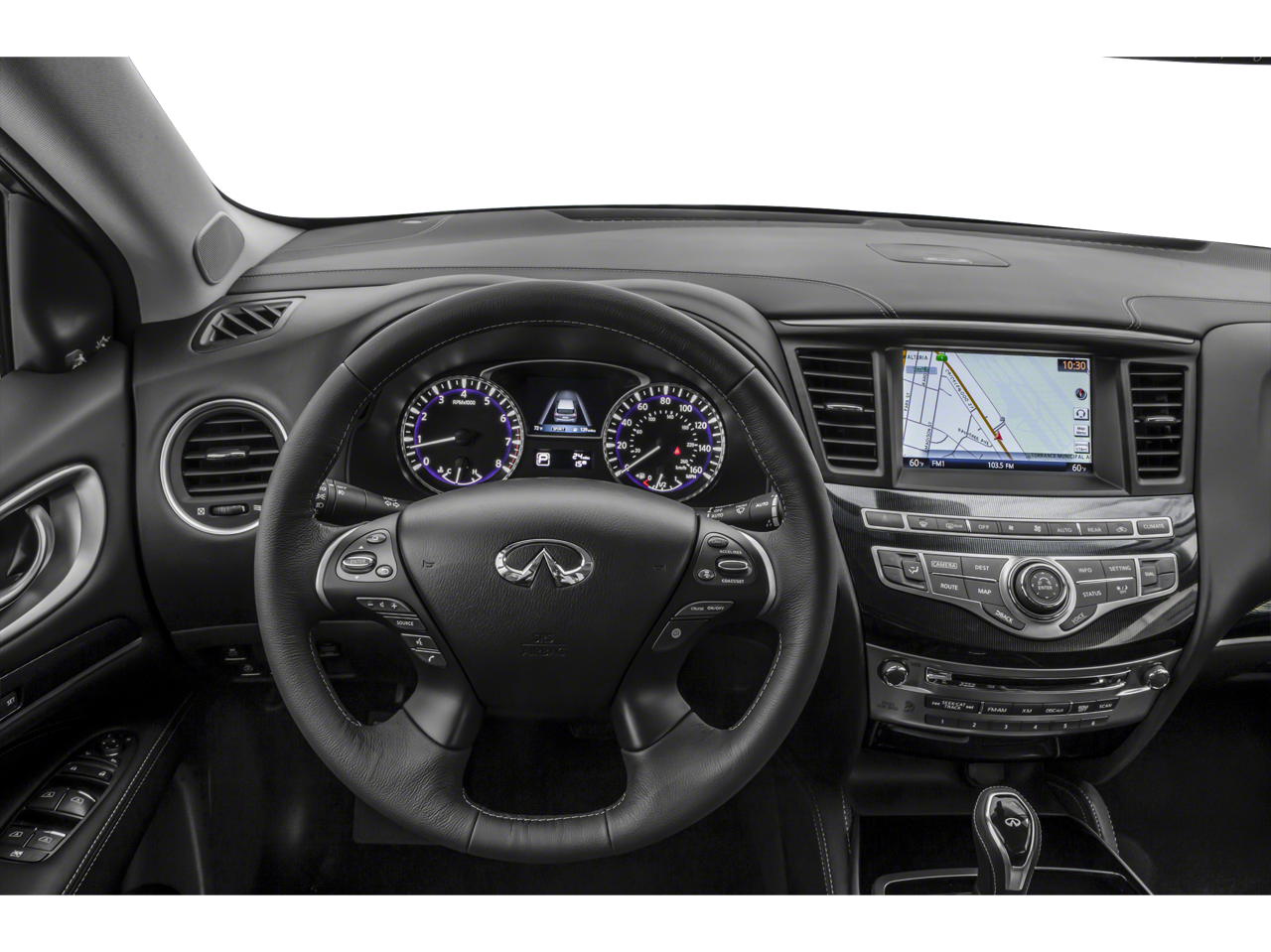 - Radio: AM/FM/CD/DVD w/Bose Premium Audio System -inc: 13 speakers, MP3 playback capability, Radio Data System (RDS), speed-sensitive volume control, INFINITI controller, auxiliary audio/video input jacks in front center console, 6 USB charging ports (charge only): front center console, illuminated (2X - 1 type A and 1 type C), rear center console-mounted, illuminated (2X - 1 type A and type C) non theater only and 3rd row (2X - type A), INFINITI InTouch w/8" WVGA color touch-screen vehicle information display, Bluetooth® hands-free phone system, hands-free text messaging assistant, streaming audio via Bluetooth® wireless technology, INFINITI voice recognition for audio, Bluetooth® and vehicle information including music search by voice, 2 USB ports for iPod and compatible devices, HD Radio, SiriusXM satellite radio w/3-month complimentary trial and SiriusXM Travel Link w/4 year complimentary trial access to weather, fuel prices, stock prices, sports scores and movie times